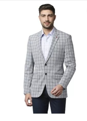 Men Checkered Single Breasted Formal Blazer (Blue)